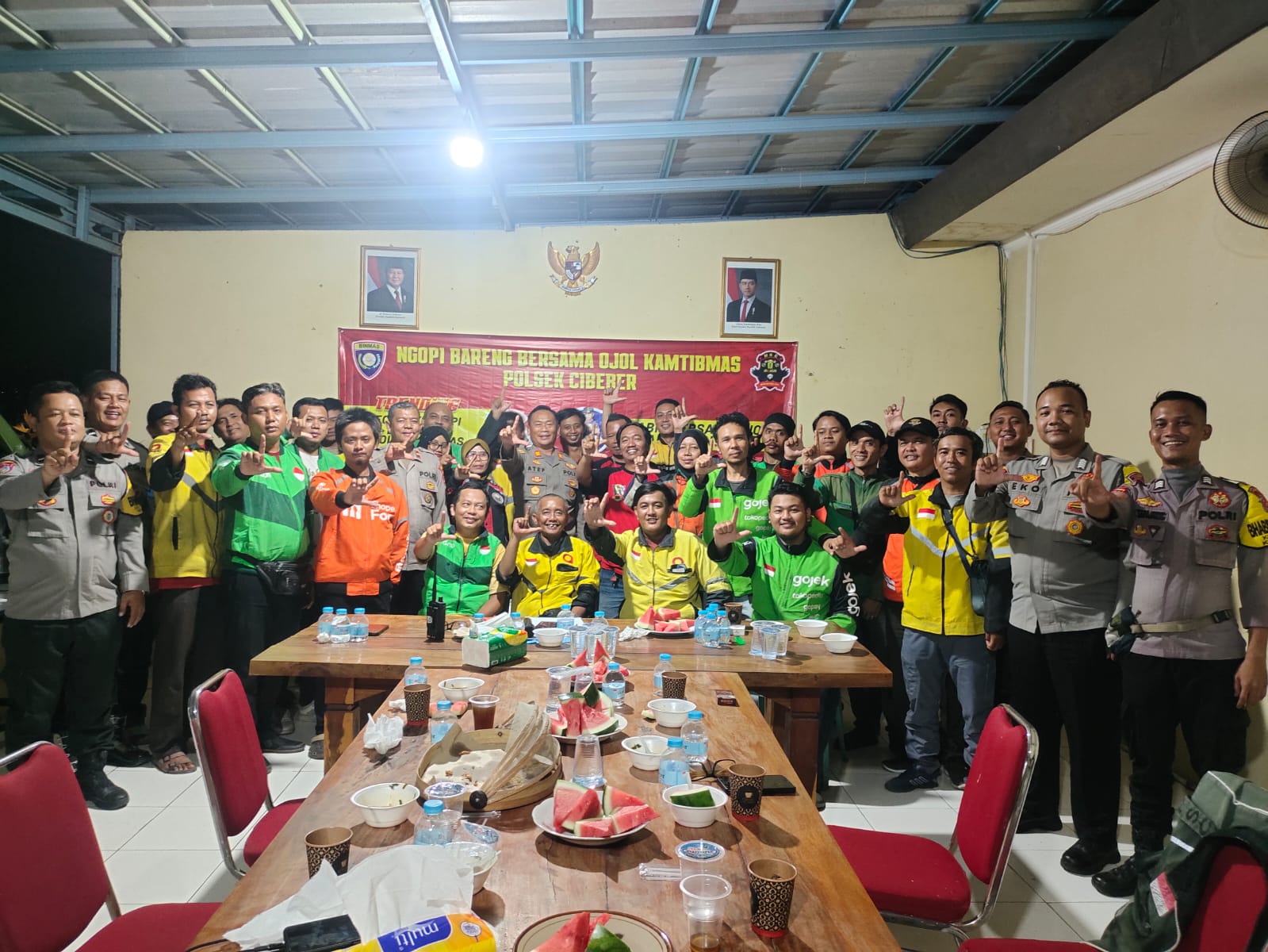Kota Cilegon, (LC)- Polsek Cibeber Polres Cilegon menggelar Ngopi Bareng bersama komunitas ojek online Maxim Response Corps Cilegon Banten (MRC CB).