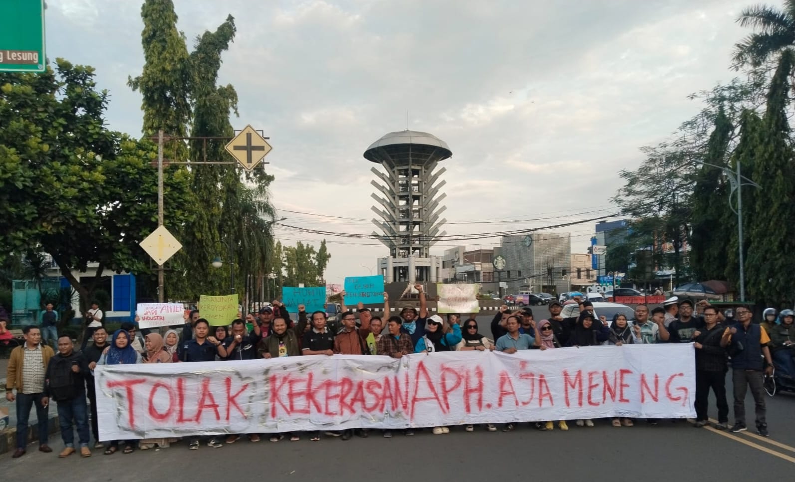 Reaksi cepat datang dari para jurnalis di Kota Cilegon yang menggelar aksi solideritas di Landmark Kota Cilegon, Provinsi Banten.
