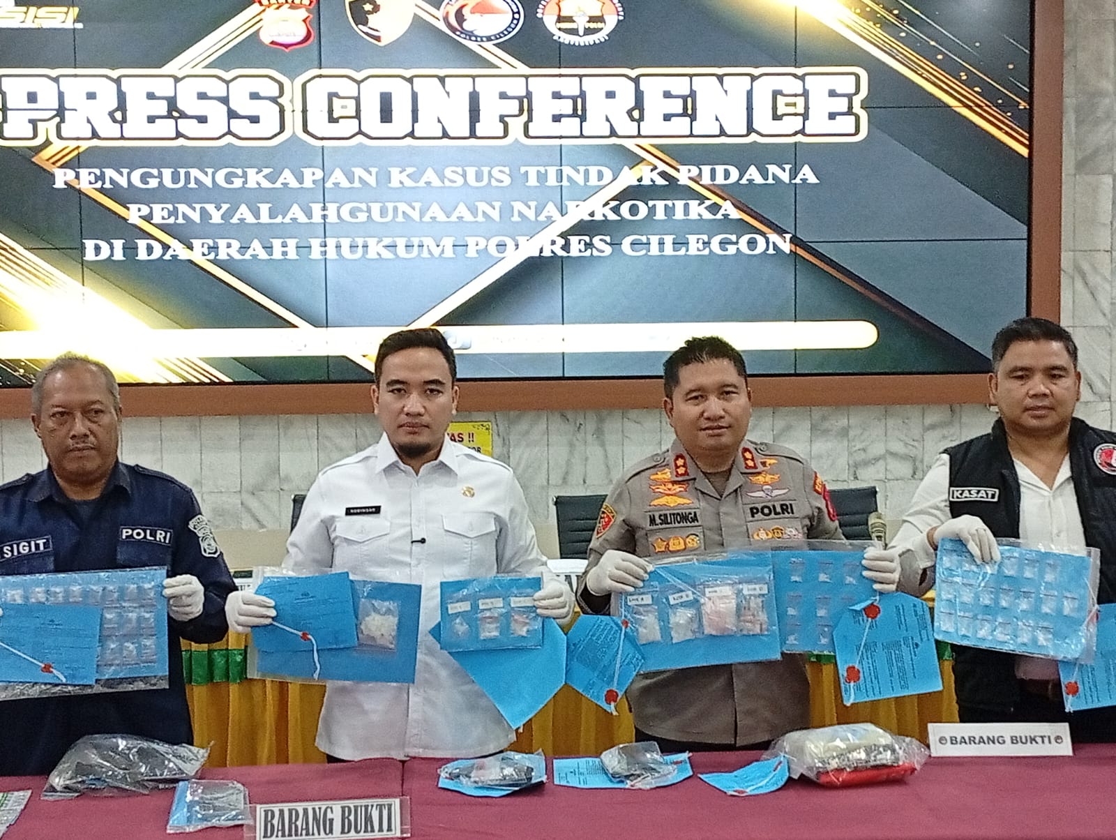 Hal itu terungkap dalam konpers yang digelar diauli Polres Cilegon dan dihadiri oleh Kapolres Cilegon AKBP Martua Silitonga, Wali Kota Cilegon Robinsar, Kasat Narkoba AKP Suryanata, Kasi Humas Polres Cilegon AKP Sigit Dharmawan, Senin, 13 April 2026.