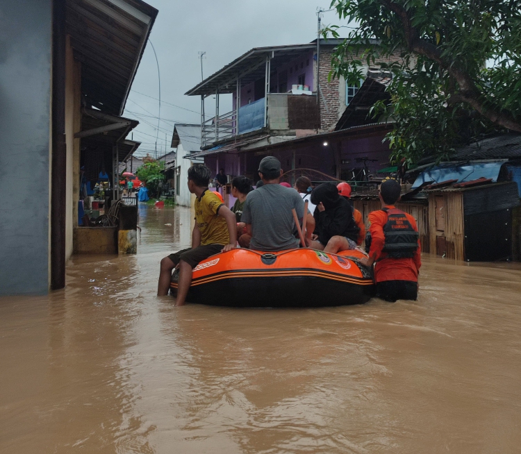 Sejumlah relawan seperti Tagana, PMI, FPRB serta anggota BPBD tengah melakukan assessment terhadap daerah yang dilanda banjir.