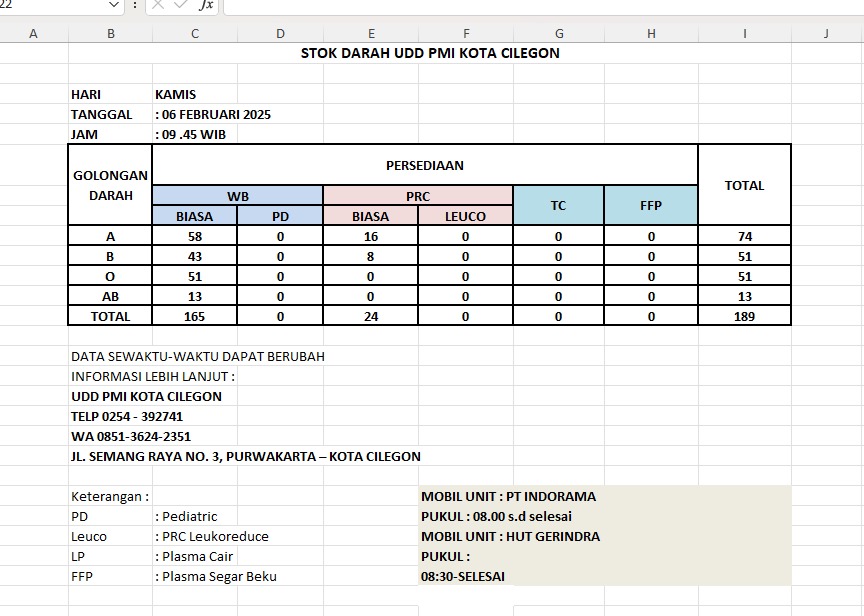 Sosial Info Ketersediaan Darah Hari Ini Oleh: Langit Cilegon 6 Februari 2025 6 Februari 2025 347 views A+A- Reset BAGIKAN 0FacebookTwitterWhatsappTelegramThreadsBluesky 347 Info ketersediaan darah hari ini di UDD PMI Cilegon, Kamis, 6 Februari 2025. REKOMENDASI BERITA Bentuk Kepedulian, Komunitas Sayang Cilegon Buka Cuci Gratis,... Breaking News, PNKT Gelar Temu Karya Karang Taruna... Langsung ke Rumah Warga, Istri Wali Kota Cilegon... Masjid Nurul Ikhlas dan Baznas Gelar Khitanan Massal,... KAISAR Peduli Banjir Cilegon, Salurkan Bantuan ke Posko... Puluhan Pengurus PCNU Kota Cilegon Esok Dilantik, Ini... Hari Lingkungan Hidup Sedunia 2025, Ini yang Di... Beredar Video Pelantikan KNPI Cilegon Terjadi Perdebatan, Ini... Ratusan Kader Gerindra Cilegon Lakukan Bersih-Bersih Pantai Mabak,... Pemenang Grandprize Mobil Asal Tegal Cabe Sumarni Bermimpi... TINGGALKAN KOMENTAR Cancel Reply Save my name, email, and website in this browser for the next time I comment. Δ