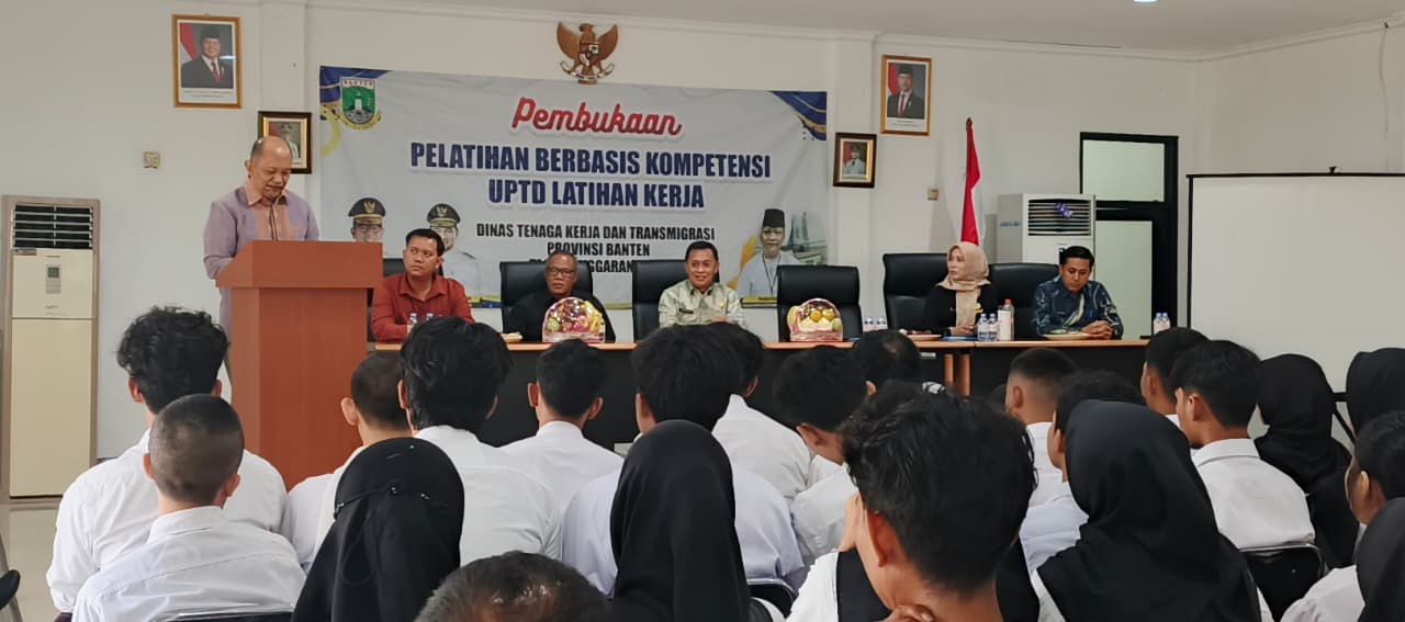 Pelatihan berbasis kompetensi dibuka langsung Kepala Dinas Tenaga Kerja dan Transmigrasi atau Disnakertrans Provinsi Banten, Septo Kalnadi di Serang, Senin (1/8/2025).