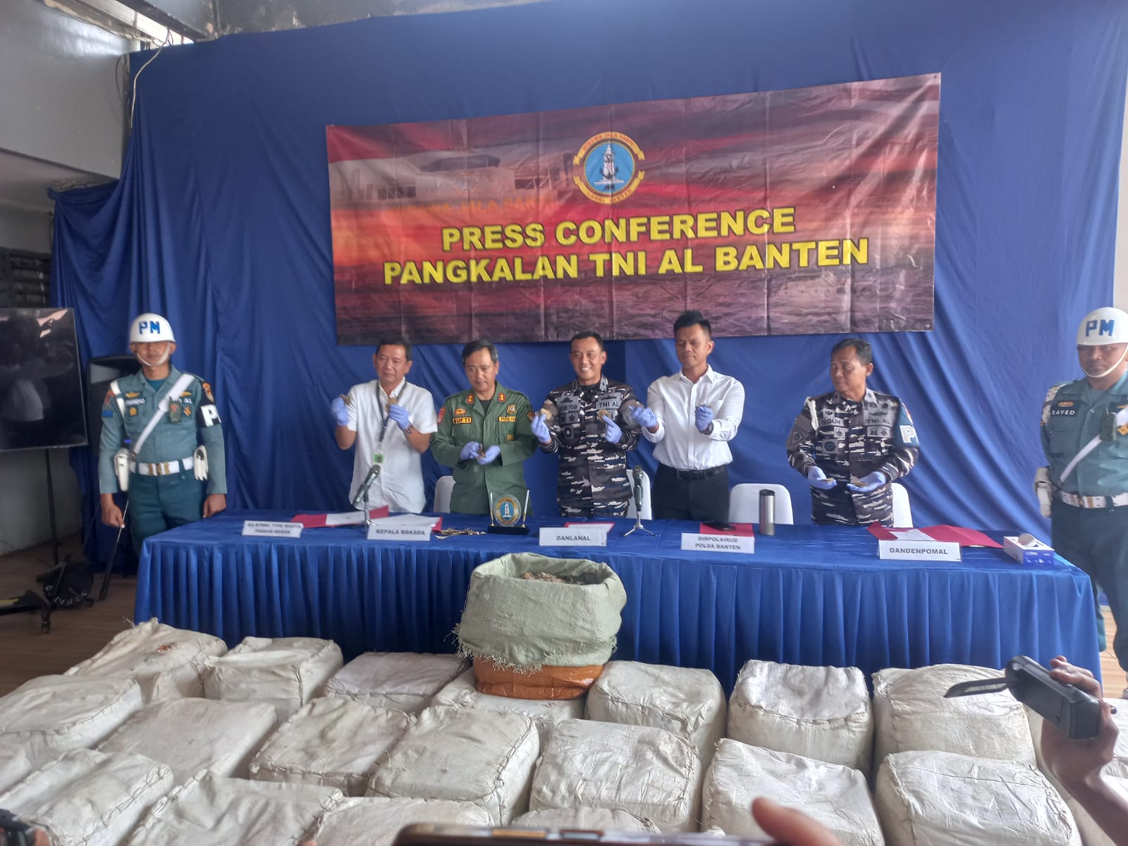 Turut hadir pada konferensi pers tersebut, Dandenpomal Lanal Banten Mayor Laut (PM) Teguh Yulianto, Dirpolairud Polda Banten, Kasubdit Gakkum AKBP Muhammad Fahrurozy.