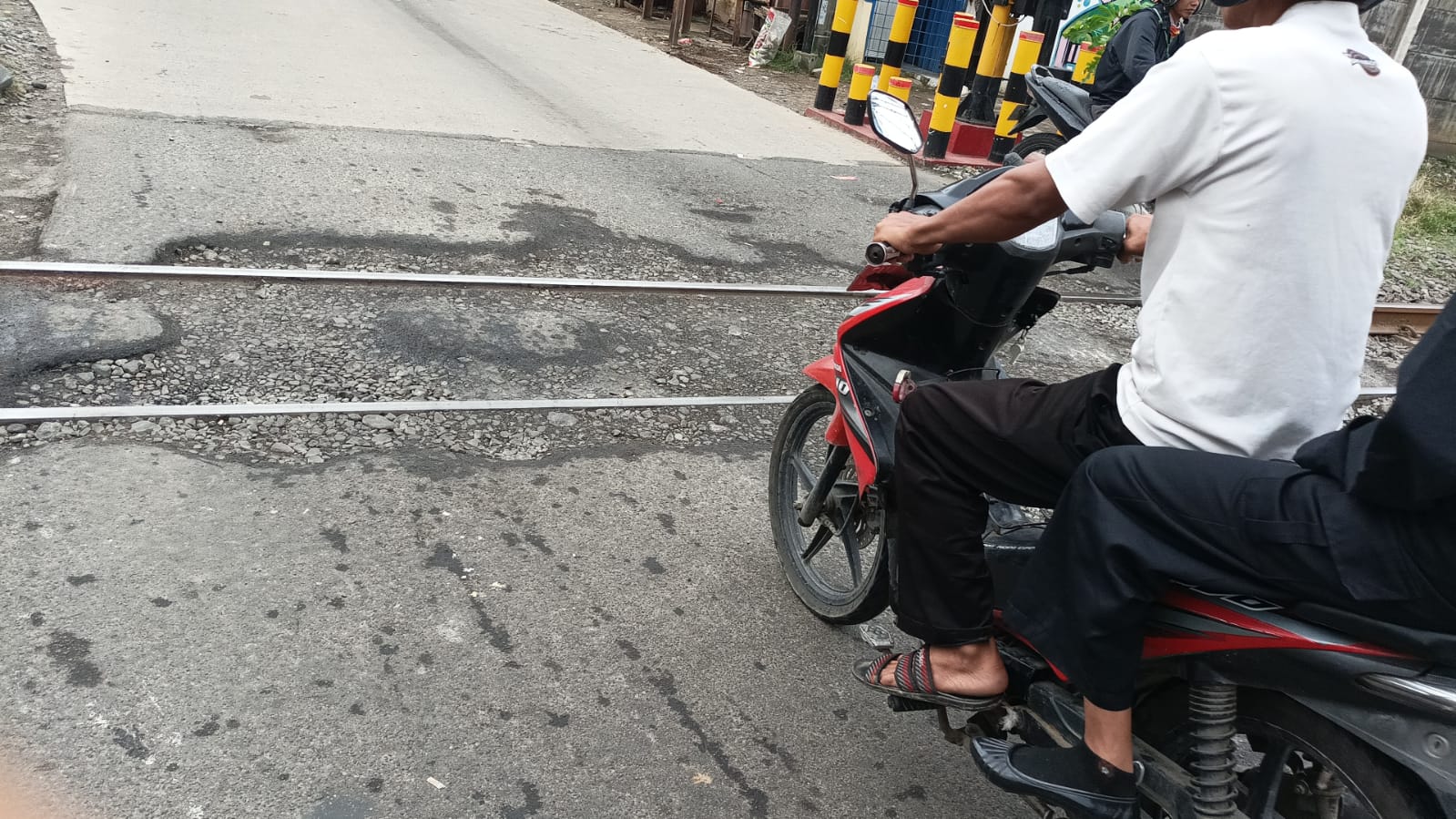 Salah satu pengendara pengguna jalan yang melintas rel kereta, Puspa mengatakan, dirinya ketar – ketir melihat kondisi jalan.