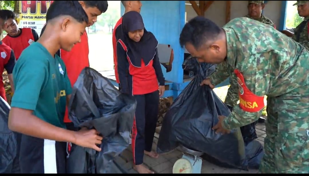 “Kami siapkan hadiah makanan ringan bagi para pelajar yang mengumpulkan sampah. Setelah ditimbang dan diketahui beratnya, kami langsung berikan hadiah,”ungkap Serka Saffrudin.